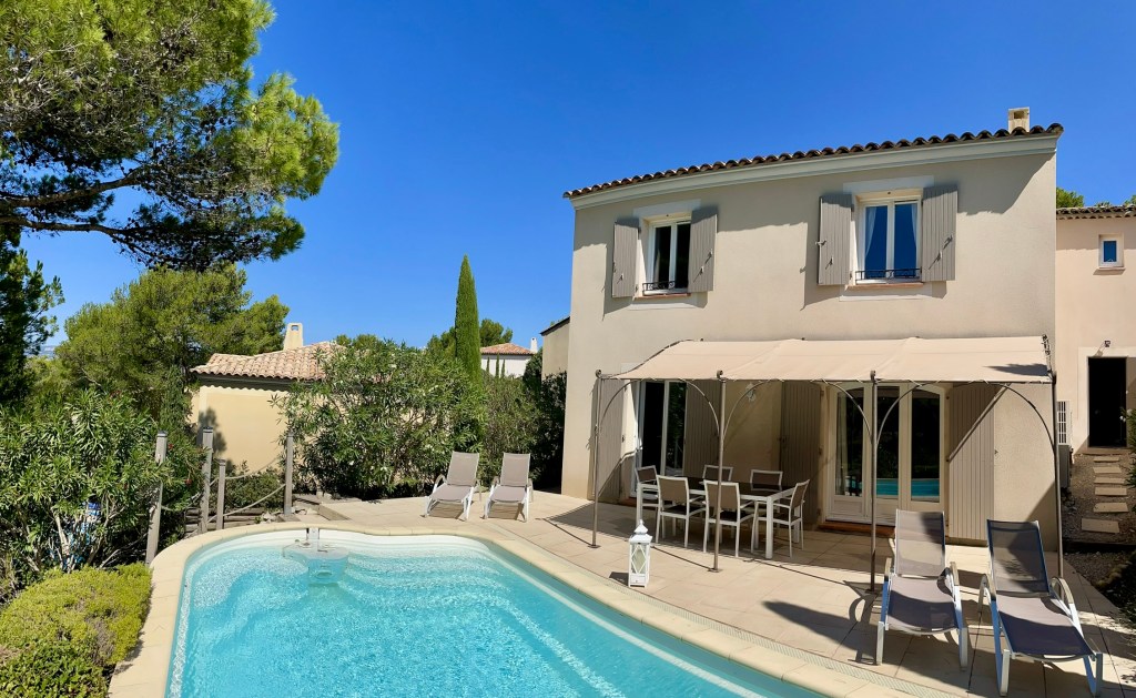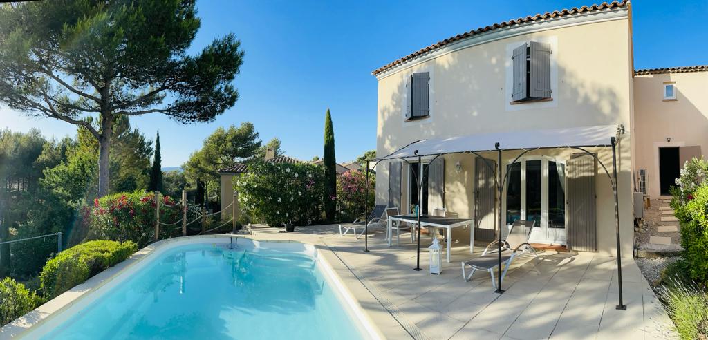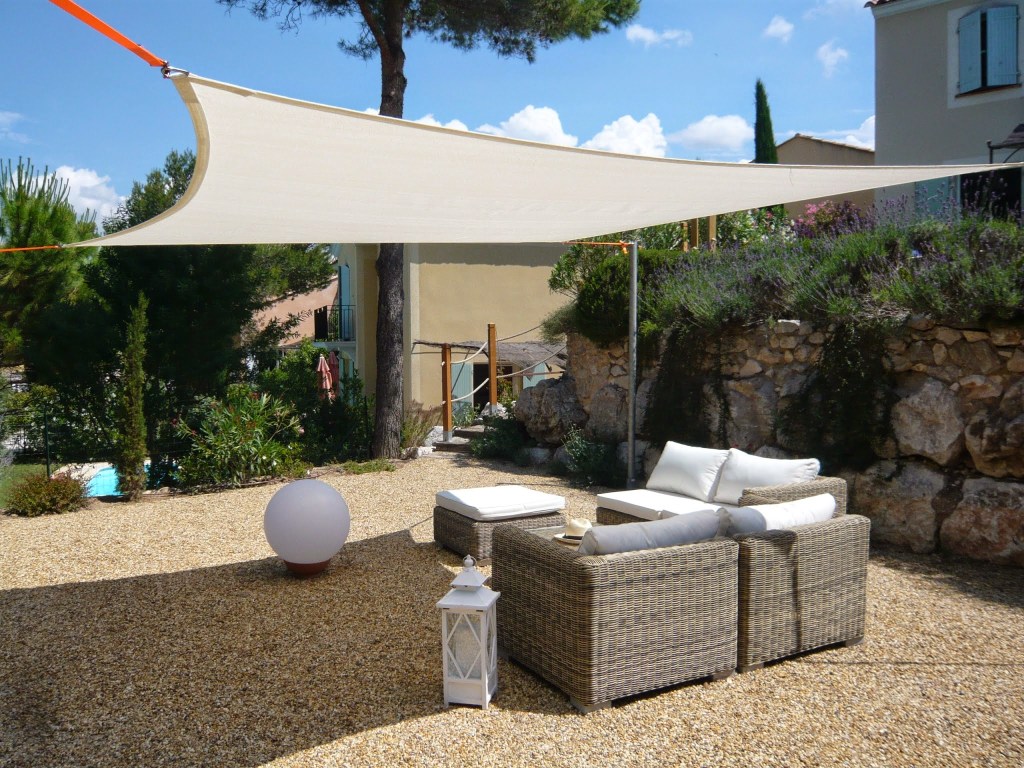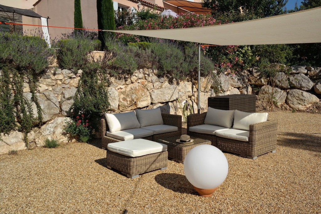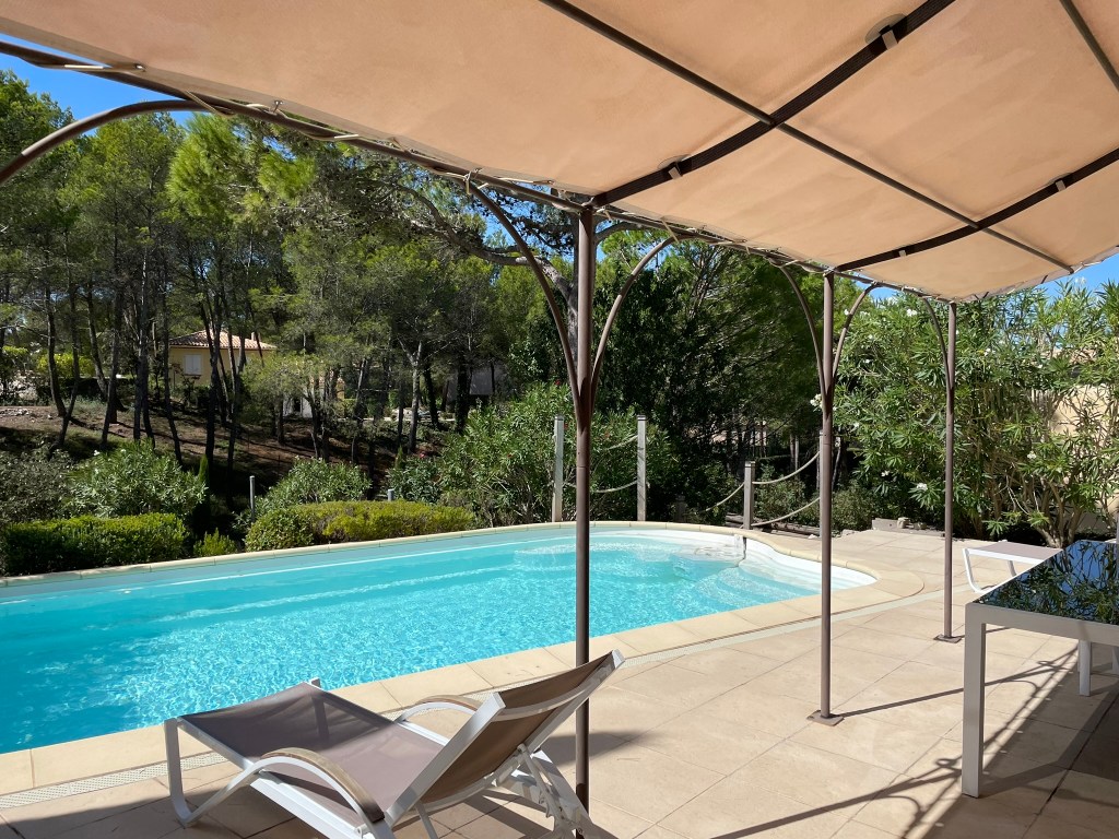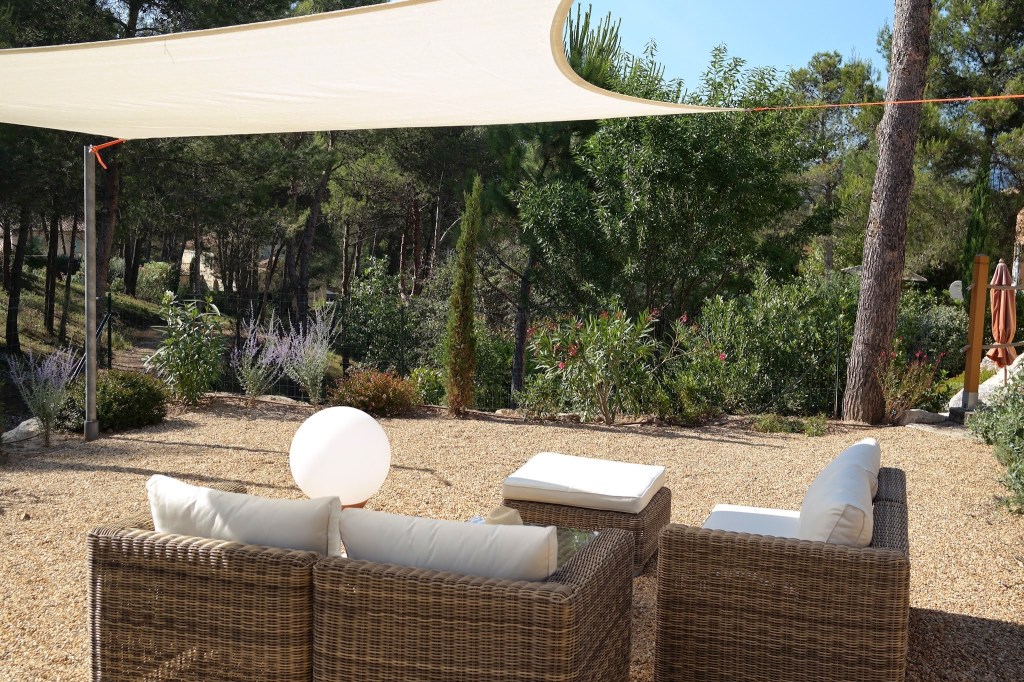 La villa dispose de 2 grandes terrasses: l’une pour la piscine, l’autre en contrebas abrite un salon de jardin ombrage et jardin paysagé méditerranéen. La piscine est protégée par un volet de protection roulant, ainsi qu’une alarme; elle est entretenue 2 fois par semaine par un professionel.
